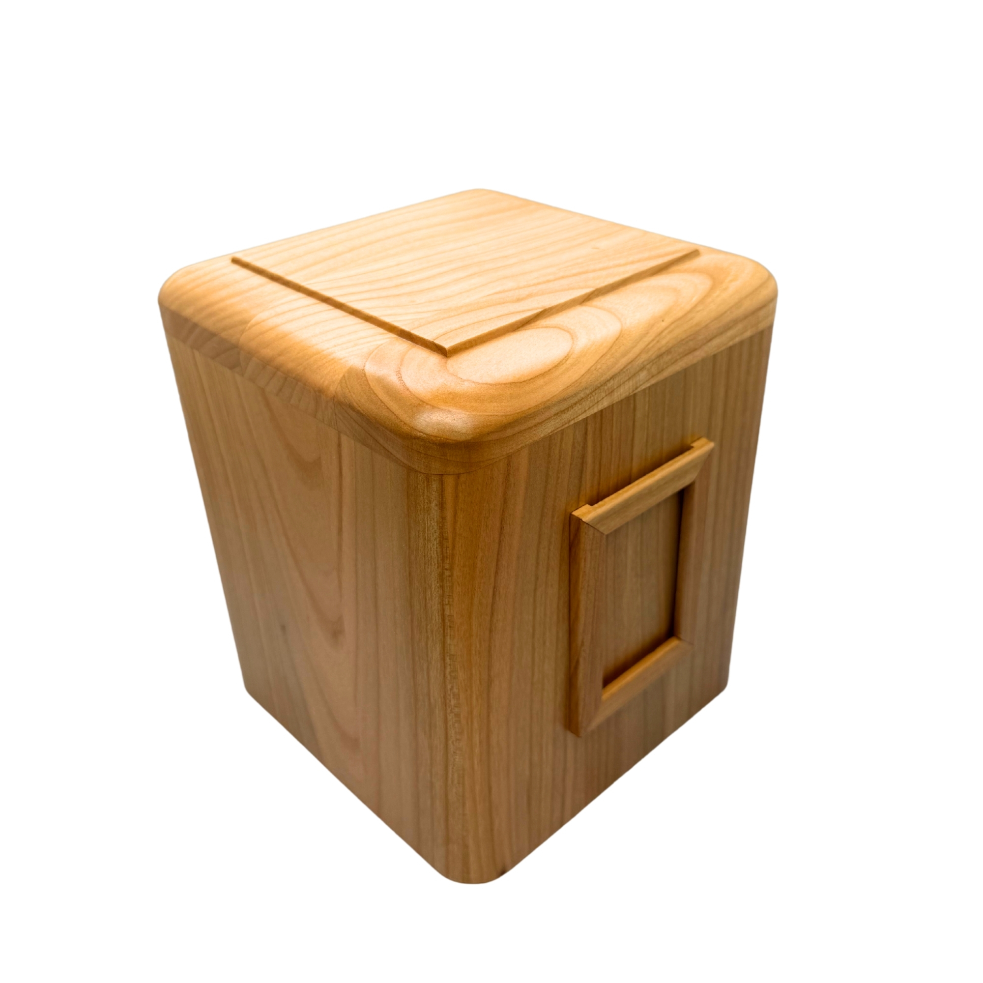 | Dřevěná urna vhodná pro zvířátka nad 27 kg. | Urna ze světlého dřeva s rámečkem na fotografii, vhodná pro zvířátka do 15 kg. | Urna ze světlého dřeva s rámečkem na fotografii, vhodná pro zvířátka 12 - 27 kg. | Dřevěná urna vhodná pro zvířátka nad 27 kg | Dřevěná urnička ze světlého dřeva vhodná pro zvířátka do 8kg. |