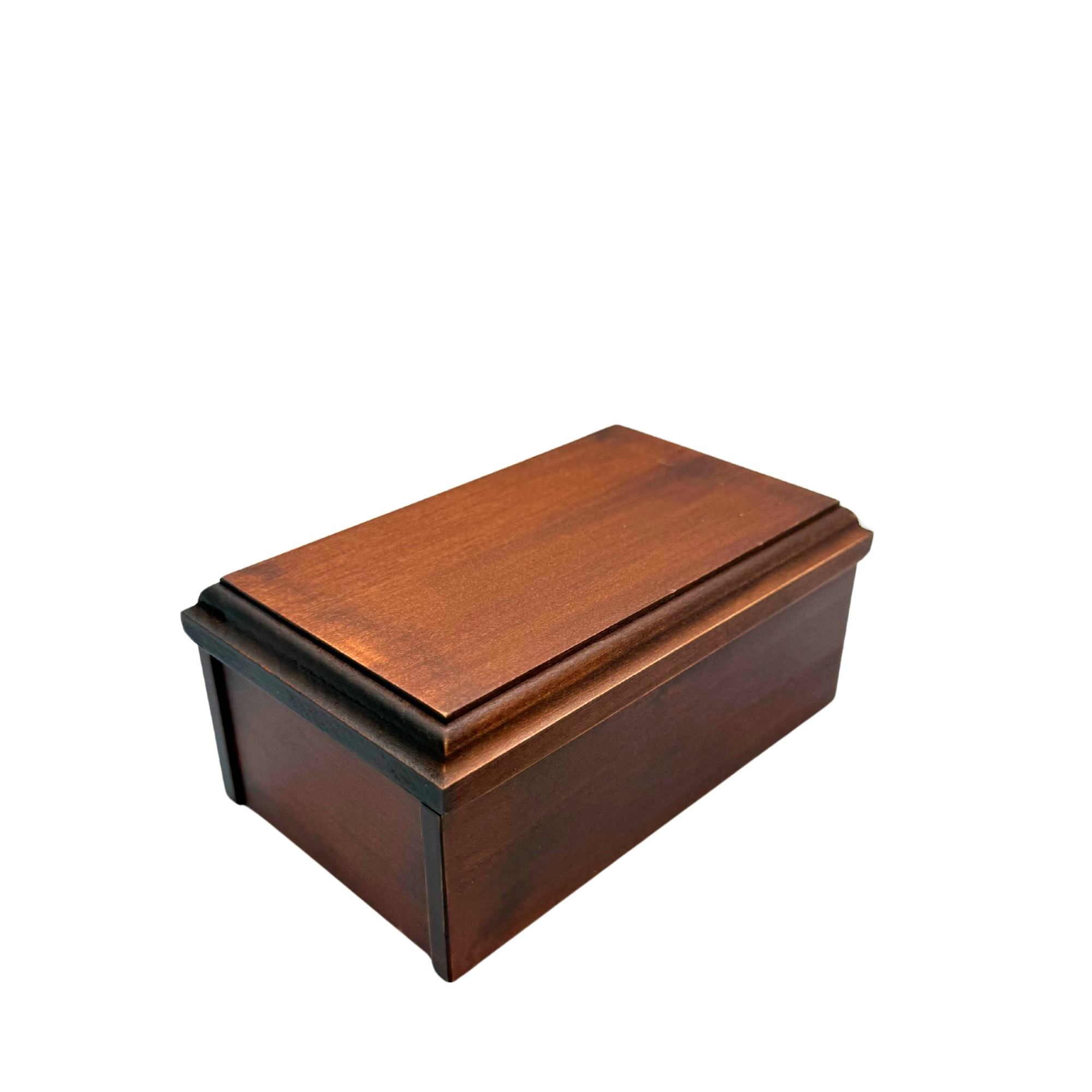 | Urnička z tmavého dřeva vhodná pro zvířátka do 8kg. |