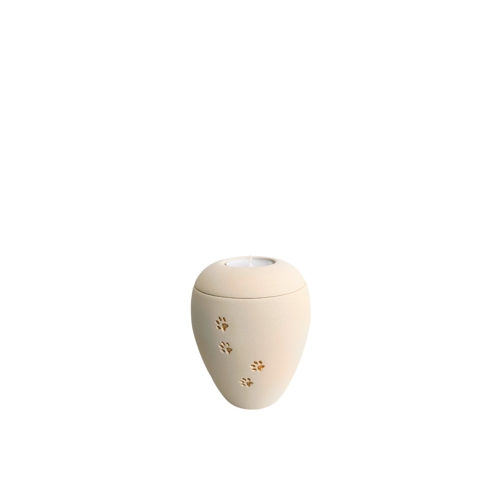 | Keramická urna pro zvířátka do 30 kg | Keramická urna ve tavru srdce vhodná pro zvířátka do 30 kg. Možnost dolepit tlapky. | Keramická urna s lepeným víčkem vhodná pro zvířátka do 10 kg. | Keramická urna s lepeným víčkem vhodná pro zvířátka do 10 kg. | Keramická urna s lepeným víčkem - svícen, pro zvířátka do 10 kg. Nápis a tlapky možné. |