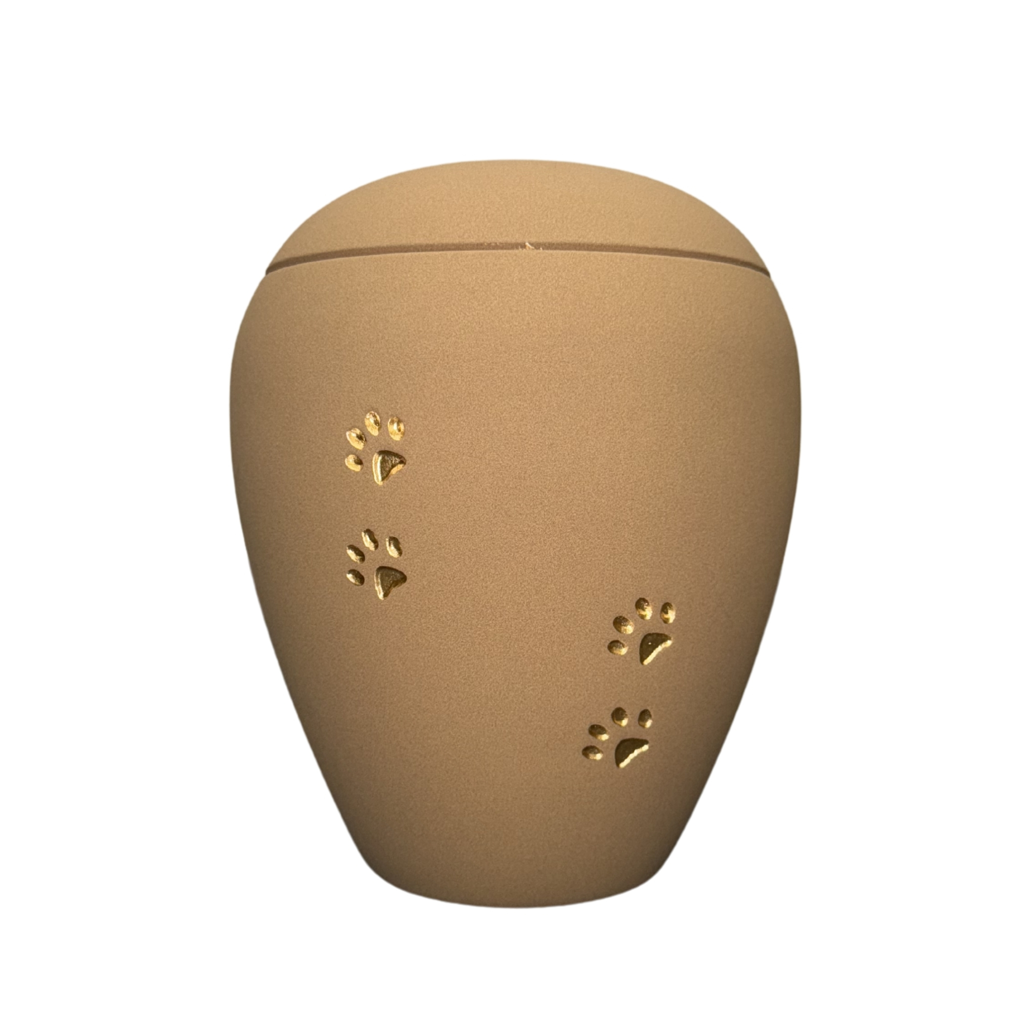 | Urna pro zvířátka do 30 kg vyrobená ze 100% odbouratelného bioplastu. Zlaté tlapky. |